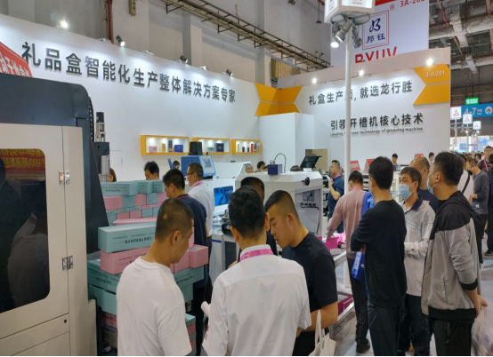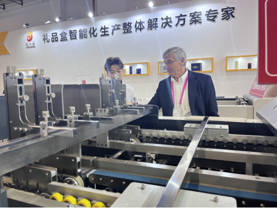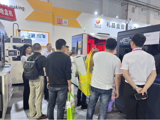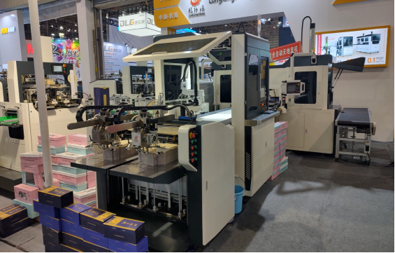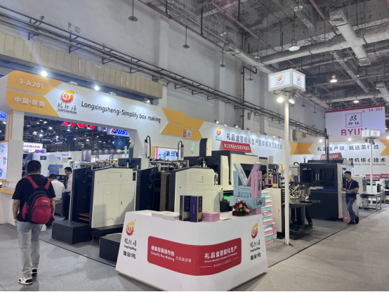 此次龍行勝也帶著市場熱銷的設備參展,從紙板開槽設備到智能禮盒成型設備的展示,讓現場客戶熟悉工藝的同時,也讓客戶了解設備性能。